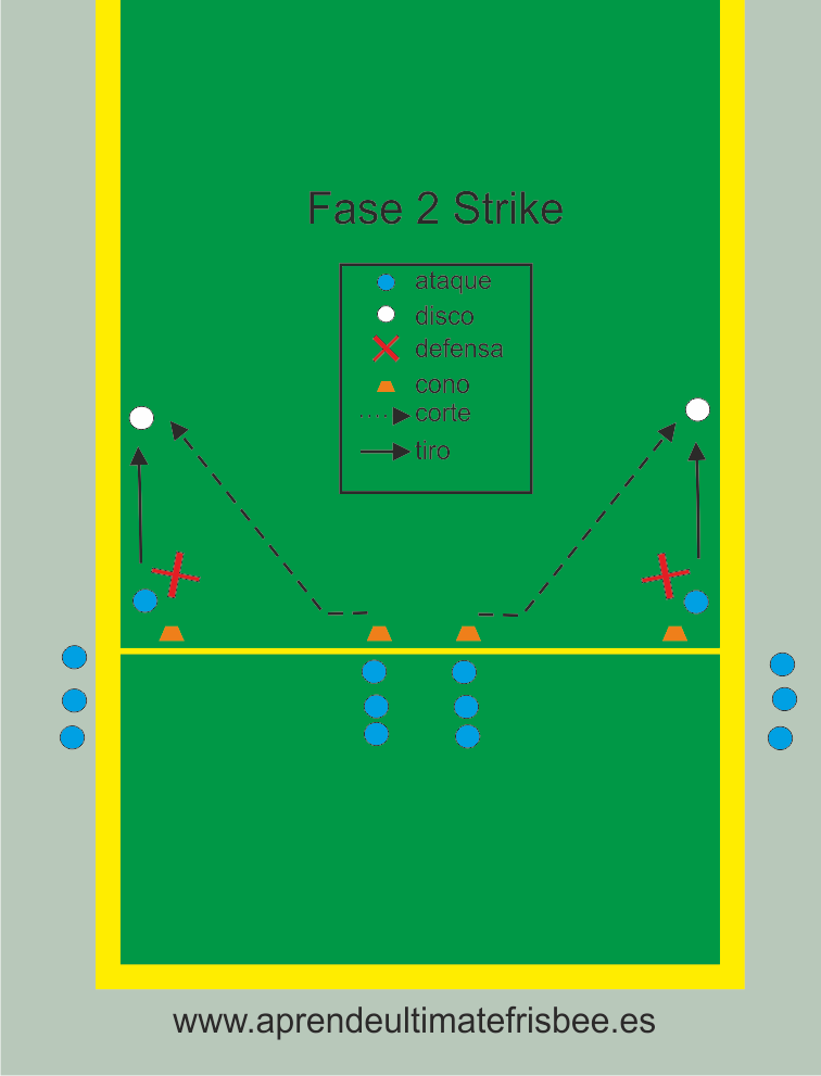 1.b iniciamos el ataque . realizamos señas al cortador para que inicie o cambie su corte.lanzamos el disco intentando que haya por lo menos un metro entre el disco y el jugador(espacio) ,para que la recepción sea mientras el jugador aun sigua corriendo.